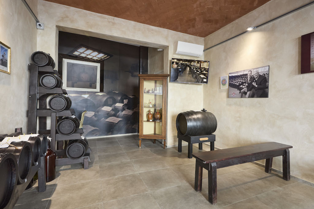 Dank der Ausstellung einer echten Batterie, die auf traditionellem Balsamico-Essig aus Modena Extravecchio PDO und einem alten Alzavino aus Glas basiert, ist es möglich , den Besuchern die Techniken des Dekantierens und der Verstärkung zu veranschaulichen .